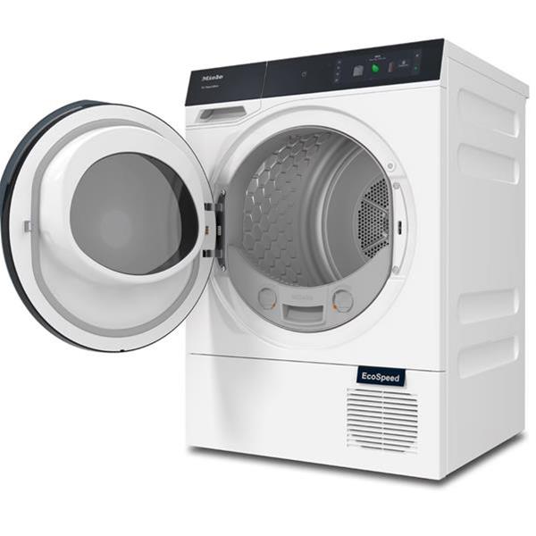 Sèche-linge pompe à chaleur Miele TQ 1000 WP Nova Edition - Conçu pour durer et performant sur tous les textiles - Avec une capacité de 9 kg, il assure un séchage électronique précis et économe - Il propose 22 programmes, dont QuickPowerDry qui sèche 4 kg de textiles synthétiques en seulement 49 minutes, WoolDry pour les lainages, un cycle chemises anti-froissage, ainsi qu’un programme express pour les petites charges - Parmi les options disponibles?: SteamCare pour défroisser à la vapeur, DryCare 40 pour les textiles lavés à 40?°C, rotation infroissable, SingleDry pour les pièces uniques, mémorisation des programmes favoris et fonction AddProgrammes - Les fonctions connectées Miele@home et Wash2Dry permettent de synchroniser les appareils compatibles et de gérer les cycles à distance - Le moteur à induction ProfiEco garantit silence, durabilité et efficacité énergétique - Le tambour SilenceDrum en inox, d’un volume de 120 litres, bénéficie d’un éclairage LED et d’une rotation alternée pour préserver les fibres - Côté sécurité, ce modèle intègre un verrou enfant, un code PIN, ainsi que des indicateurs pour le réservoir et les filtres - Son design élégant associe un bandeau tactile incliné M Touch Pro à une carrosserie blanc lotus - Il s’installe facilement sous plan ou en colonne, avec des dimensions standards (L?596 x H?850 x P?643 mm) - L’éclairage d’ambiance AmbientLight et la détection de mouvement MotionReact apportent un confort d’utilisation premium